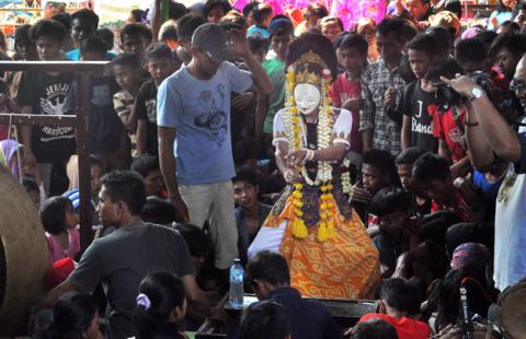 Pergelaran Topeng Cirebon Grup Langgeng Saputra dalam Upacara Mapag Sri di Desa Pangkalan, Kec. Celangcang, Kab. Cirebon, 17 Mei 2015