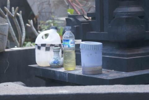 Air suci (tirta) dipakai untuk sembahyang umat Hindu Bali didokumetasi di salah satu rumah penduduk di Gianya-Bali pada 19 Agustus 2013.