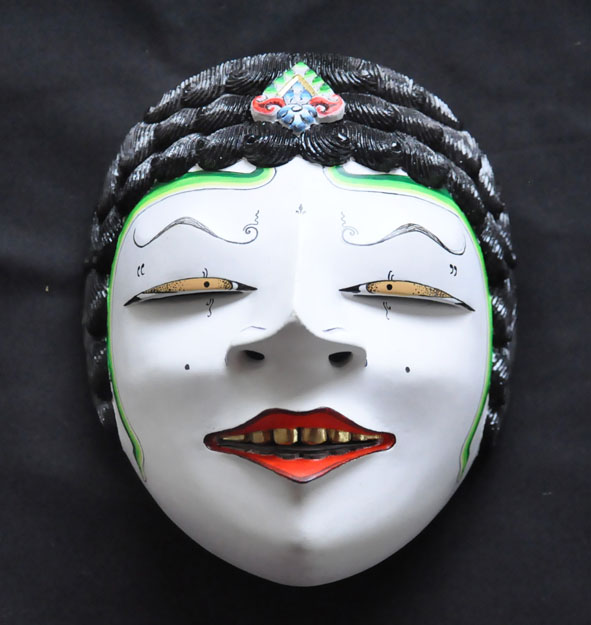 Kedok Pamindo Cirebon, dengan hiasan rambut dan kembang tiba. Terbuat dari kayu Jaran (Atropa curcas). Dipakai dengan cara digigit. Dalam pertunjukan topeng Cirebon, kedok ini ditarikan pada bagian kedua setelah topeng Panji. Diiringi oleh ensembel gamelan Pelog atau Salendro dengan lagu Pamindo atau Singa Kawung. Karakter tarinya genit. Gerakan tarinya energik.