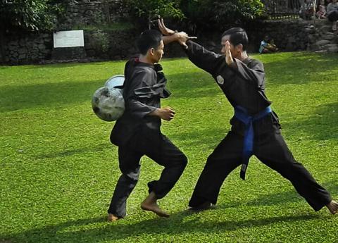 Menangkis pukulan lawan dalam seni silat Parebut Senng